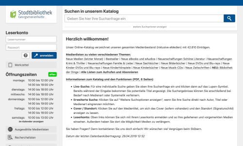Der BVS eOPAC wird von über 1.100 Bibliotheken im deutschsprachigen Raum eingesetzt. Sie finden hier eine kleine Auswahl verschiedener Kataloge. Falls Sie Büchereien aus Ihrer Nähe suchen, die den BVS eOPAC einsetzen, nutzen Sie unsere Kundensuche.