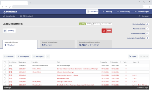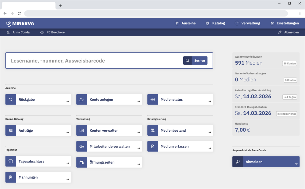 Ihr smartes Cockpit: Starten Sie effizient in den Bibliotheksalltag mit direktem Zugriff auf alle Kernfunktionen.