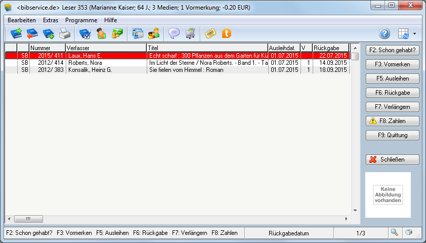 Über die Funktion Schon gehabt? können Sie prüfen, ob der Leser dieses Medium bereits schon einmal ausgeliehen hat.